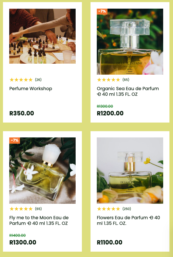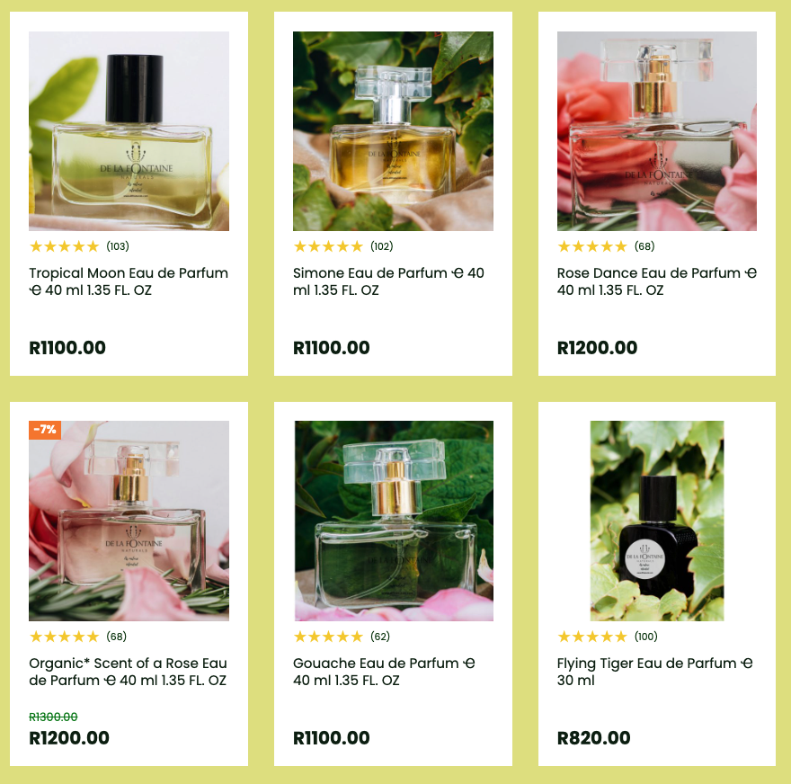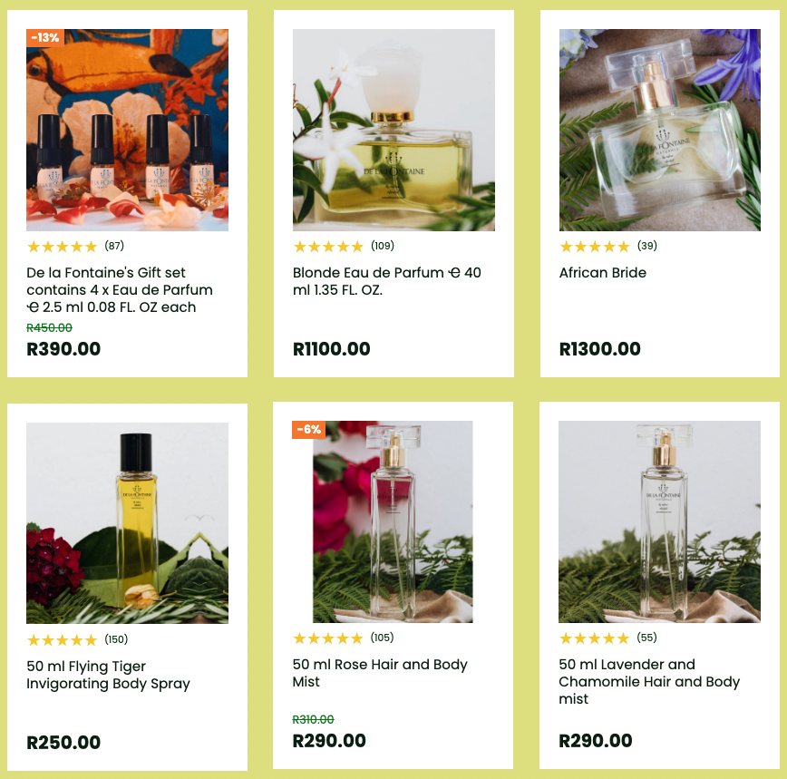 You can easily add all of these great products from South Africa Supplier of Natural Perfumes, made , sold and delivered in South Africa,